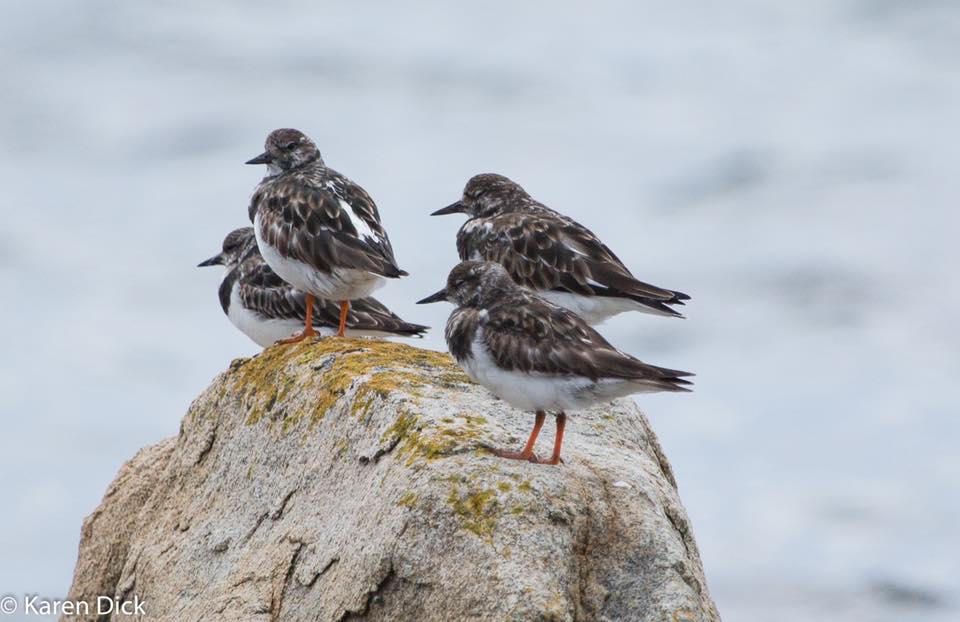 Karen Dick: as with many of the migrant waders, you may see them in breeding plumage when they first arrive, or prior to them leaving again. More often you will see partial breeding plumage, but mostly in non-breeding state.