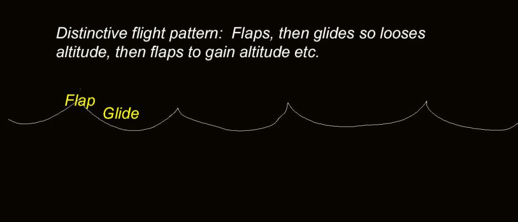 Then their flight is distinctive. I’ve tried to illustrate it with the diagram. This makes it easy to identify them if they are distant or the light is poor.